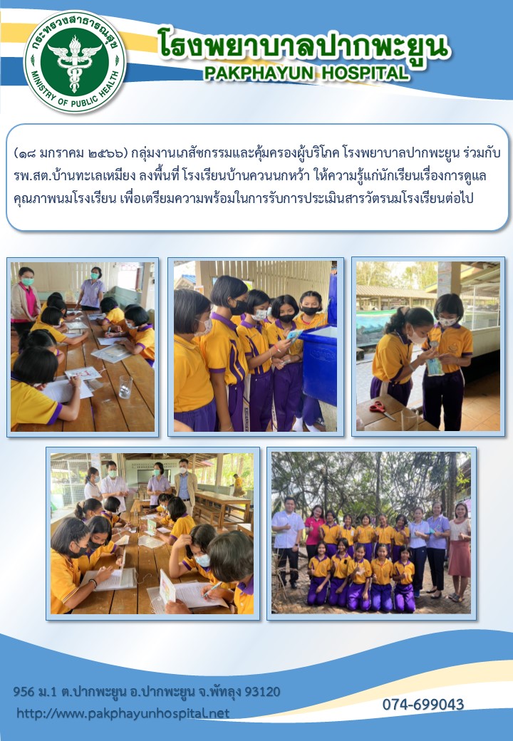กิจกรรม ลงพื้นที่ให้ความรู้เรื่อง การดูแลคุณภาพนมโรงเรียน